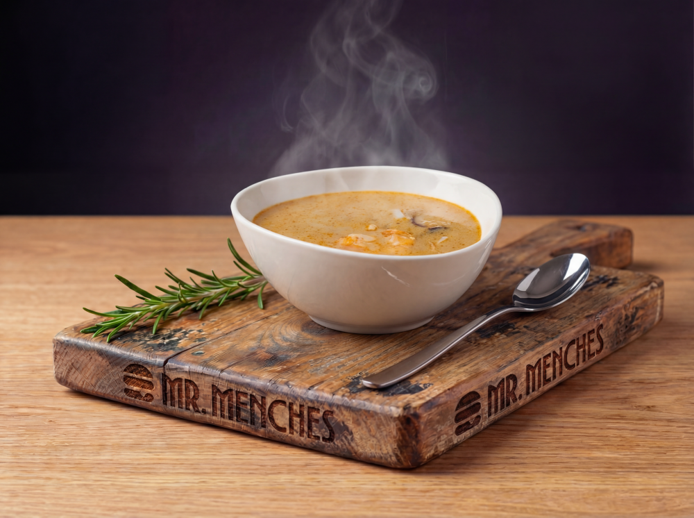 Острый и ароматный Том Ям — классический тайский суп с насыщенным вкусом лимонной травы, лайма, чили и свежих морепродуктов или курицы. Яркое и бодрящее блюдо для любителей экзотики!