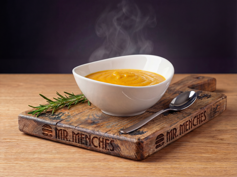 Нежный тыквенный суп с бархатистой текстурой и сладковато-пряным вкусом тыквы, идеально согревающий и создающий уют в холодный день.