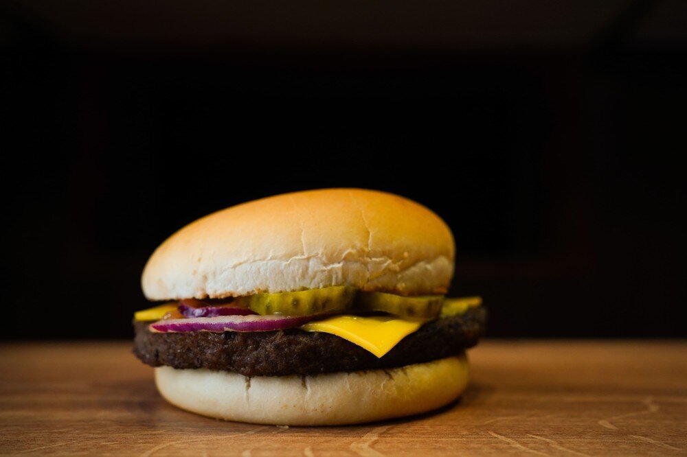 Всё просто: говяжья котлета, сыр, булочка без кунжута, кетчуп, лук - идеально для детей.